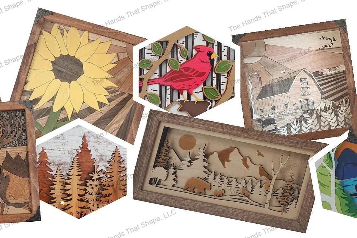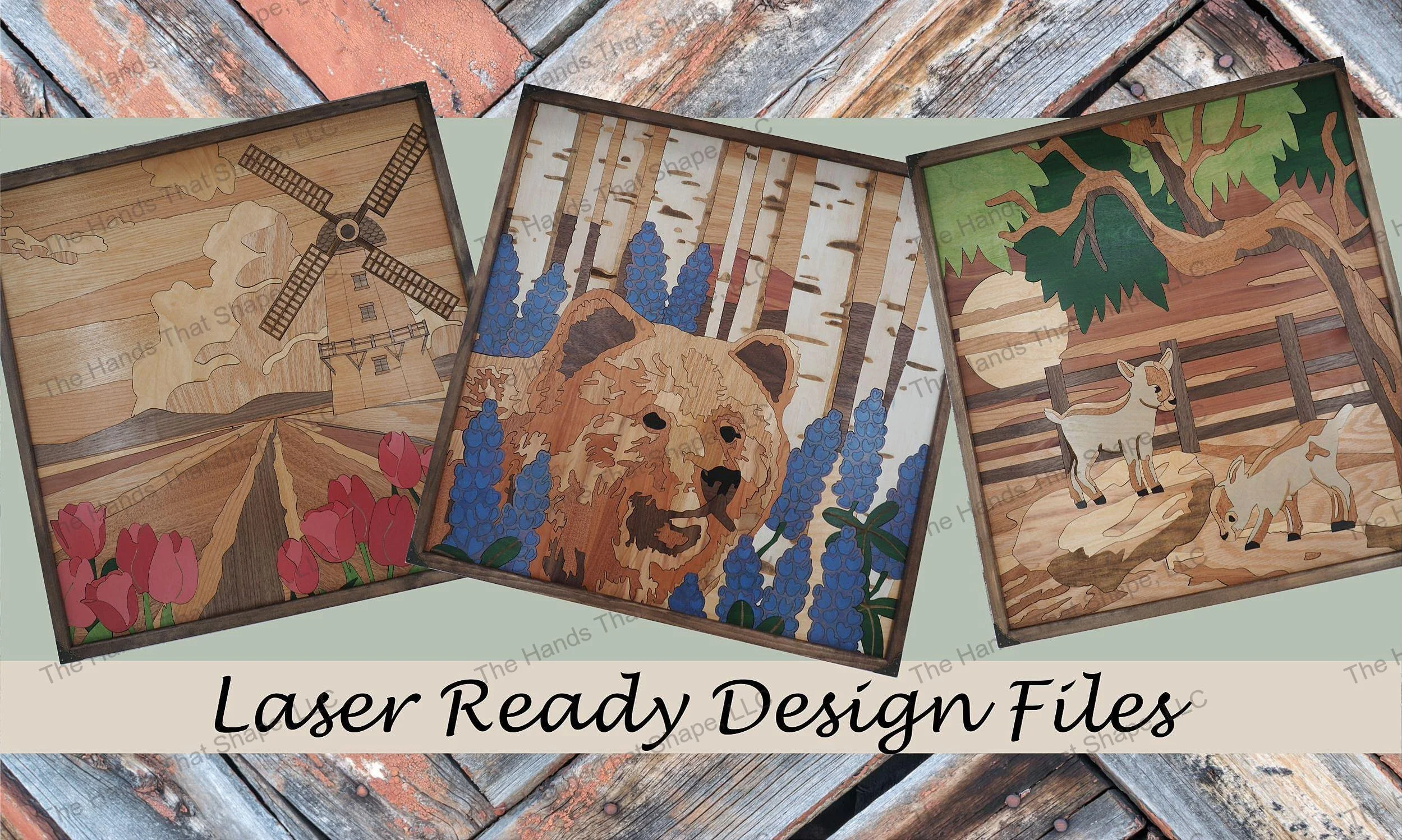The Hands That Shape, LLC is pleased to announce our expansion into the digital design file marketplace. Our initial offering is full of showstopper level wood wall art showpieces (Bear and Lupines, Playful Goats, and Tulip Field and Windmill), with many more exciting designs in the works.